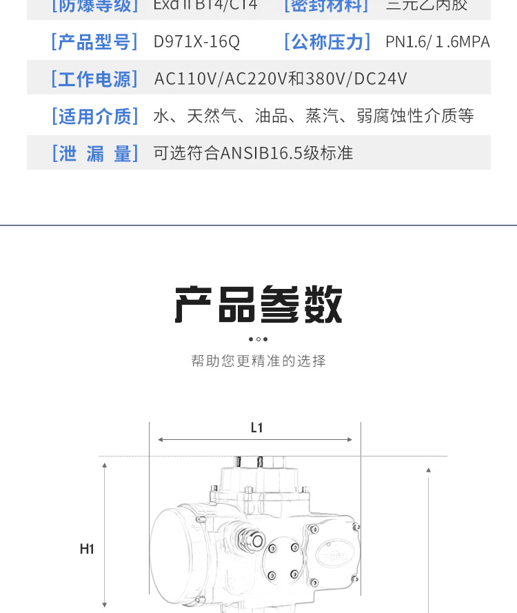 電動對夾蝶閥概述: D971X電動蝶閥屬于電動閥門和電動調節閥中的一個品種。電動蝶閥連接方式主要有:法蘭式和對夾式;電動蝶閥密封形式主要有:橡膠密封和金屬密封。電動蝶閥通過電源信號來控制蝶閥的開關。該產品可用做管道系統的切斷閥,控制閥和止回閥。附帶手動控制裝置,一旦出現電源故障,可以臨時用手動操作,不至于影響使用。 D971X電動法蘭蝶閥通常由角行程電動執行機構(0~90°部分回轉)和蝶閥整體通過機械連接,經過安裝調試后共同組成。電動法蘭蝶閥結構簡單、體積小、重量輕,只由少數幾個零件組成。電動法蘭蝶閥處于完全開啟位置時,蝶板厚度是介質流經閥體時******的阻力,因此通過該閥門所產生的壓力降很小,故具有較好的流量控制特性。電動法蘭蝶閥主要有三偏心和單偏心兩個結構形式,密封形式有金屬密封和四氟密封及橡膠密封三種。金屬密封結構主要適用于≥300度以上的工況場合;四氟密封結構適用于≥180度以內的工況場合;四氟密封結構適用于≥120度以內的工況場合;電動法蘭蝶閥配用的角行程電動執行機構可直接接收計算機或工業儀表等輸出的4~20mADC或1~5VDC控制信號,根據閥位反饋信號與設定值比較偏差對執行機構驅動電機進行智能步距調整(PID調節),以實現與執行機構配套的閥門或其他裝置開度的******定位,同時輸出4~20mADC的位置反饋信號。目前電動法蘭蝶閥廣泛應用與石油、化工、冶金、輕工、造紙、電站、制冷等工作領域。